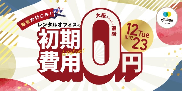 今だけ、billageでは大阪エリアのレンタルオフィス限定で、2025年最後のキャンペーンとして、初期費用が0円になるキャンペーンを実施いたします!