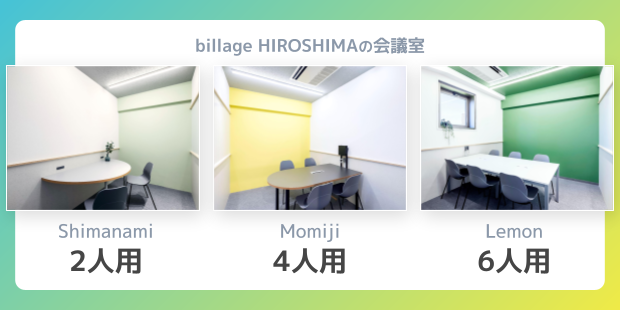billage HIROSHIMA 合人社広島紙屋町ビルはコンパクト&柔軟にオフィスを開設できるよう、1名用~最大6名用までレンタルオフィスを展開しています。