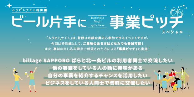 10/24(金)@札幌|交流会「ムラビトナイト」~ビール片手にゆる~い事業ピッチをしようスペシャル~