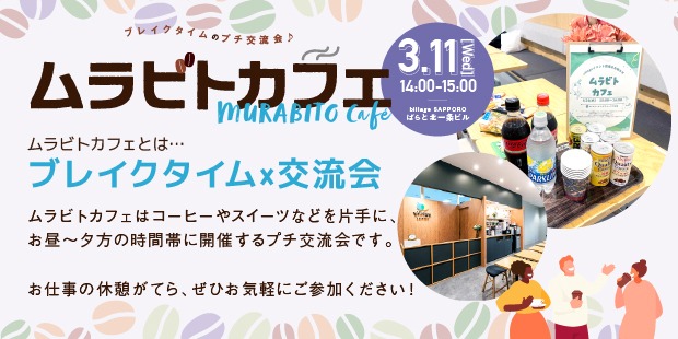 2026年3月11日(水)に、billage SAPPORO(ビレッジ札幌) ばらと北一条ビルにて、会員同士の交流会「ムラビトカフェ」を開催いたします!