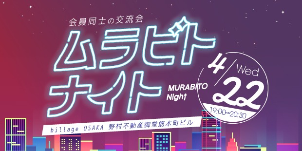 2026年4月22日(水)に、billage OSAKA(ビレッジ大阪) 野村不動産御堂筋本町ビルにて、会員同士の交流会「ムラビトナイト」を開催いたします!