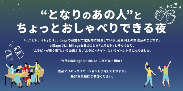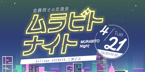 2026年4月21日(火)に、billage SHIBUYA 二宮ビルにて、会員同士の交流会「ムラビトナイト」を開催いたします!