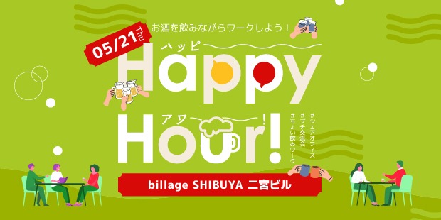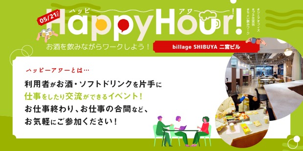 2026年5月21日(木)に、billage SHIBUYA(ビレッジ渋谷) 二宮ビルにて、「ハッピーアワー」を開催いたします!