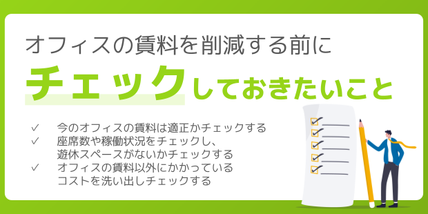 まずは「今の事業活動に適したコストであるか」という観点と「周辺相場に対して適切な賃料であるか」という2つの観点から、今のオフィスの賃料は適正かどうかチェックしましょう。