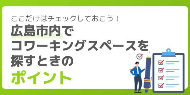 多様なコワーキングスペースが点在している広島市ですが、広島市内でコワーキングスペースを探すときのポイントを解説します。