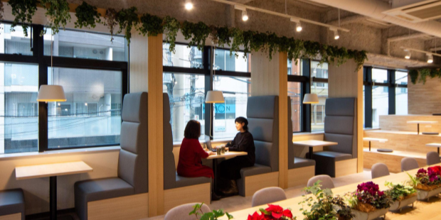 開放的な空間で、その日の気分に合わせて空いている席を利用する(これをフリーアドレス制といいます)スタイルは、生産性の向上に寄与したり、他の利用者との交流も生まれ、新しいビジネスチャンスが生まれる場としても注目されています。