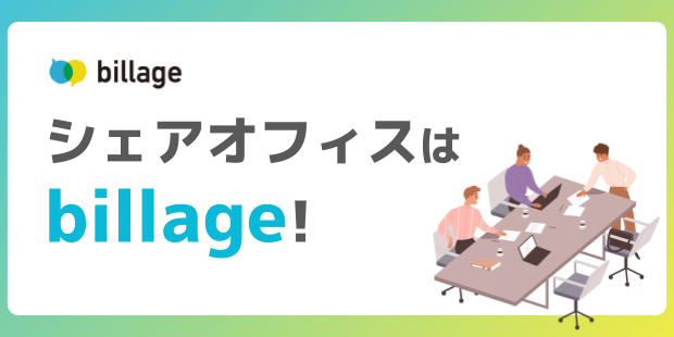 billageでは、コワーキングスペースとレンタルオフィスが併設しており、他の利用者と共有で利用するワークスペースサービスのことをシェアオフィスと定義しています。